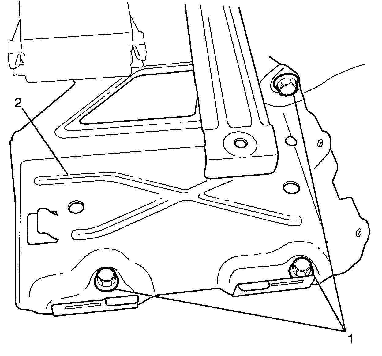 2. Fit the battery tray to chassis retaining bolts (1) and tighten to 25 Nm (18 lb ft).