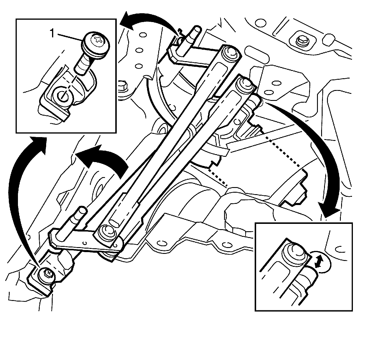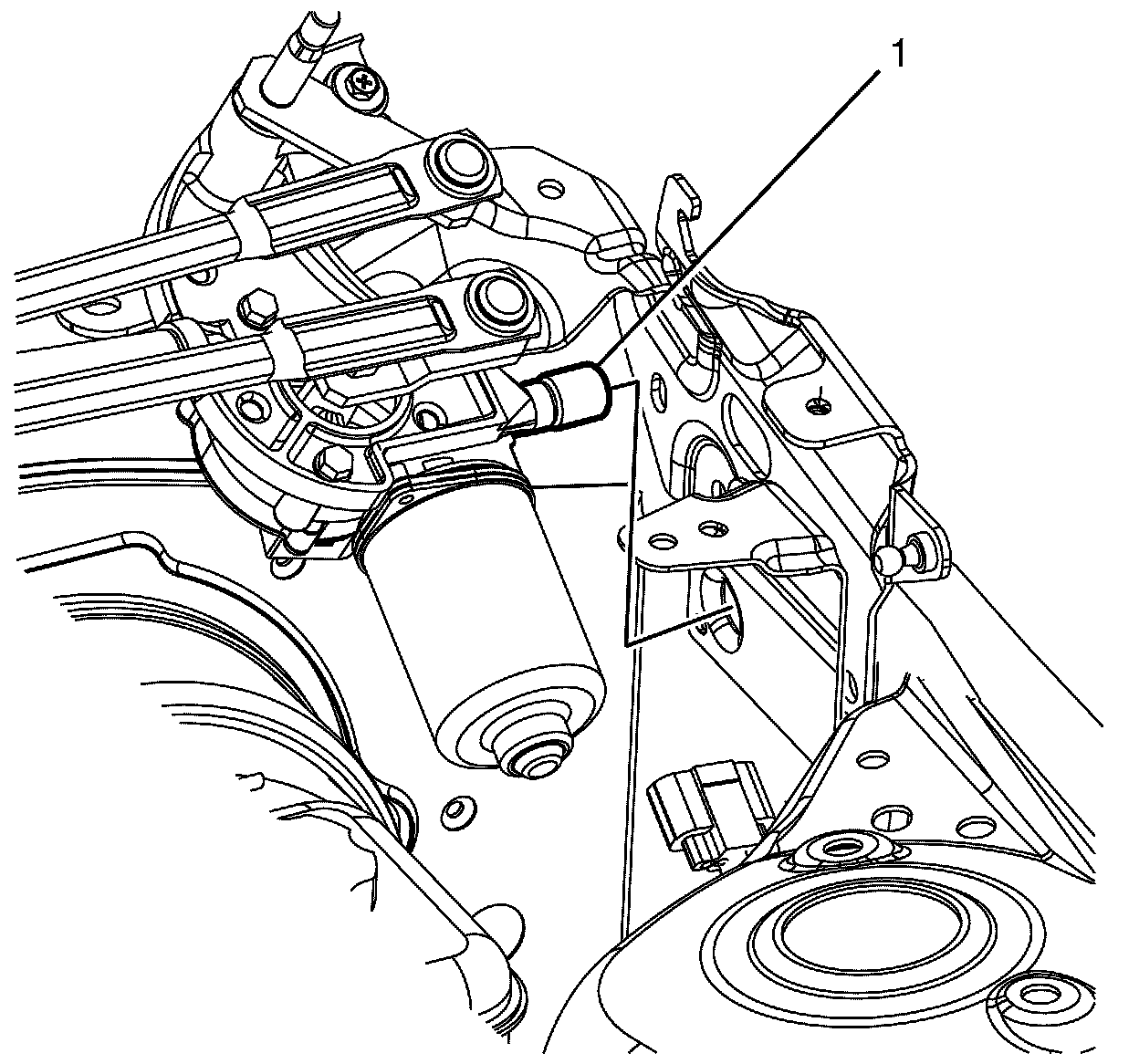 2. Install the wiper motor module to bulk head retaining bolts (1) and tighten to 8 Nm (71 lb in).