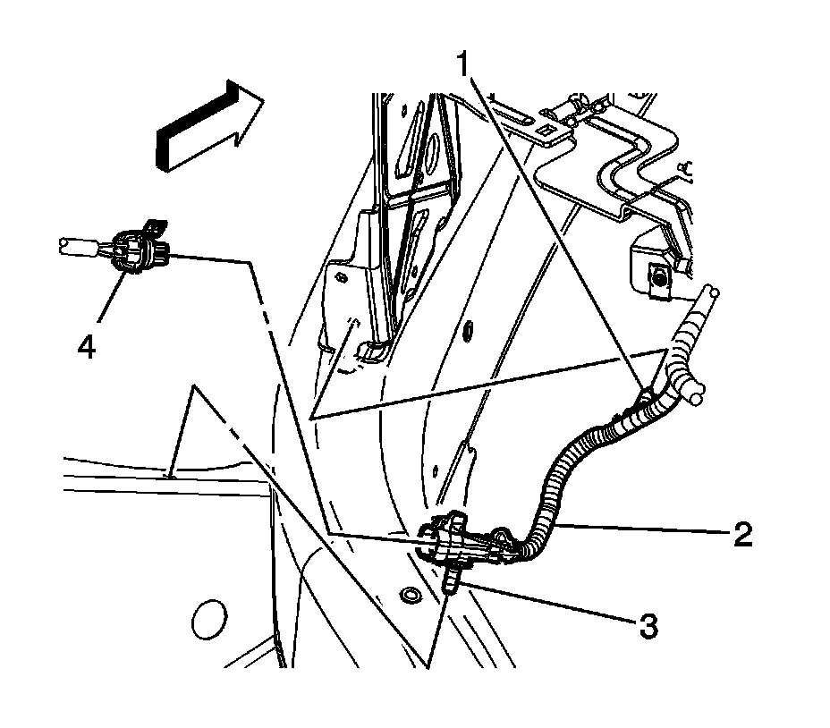 6. Disconnect the position 2 HO2S electrical connector (4) from the engine wiring harness electrical connector (2).