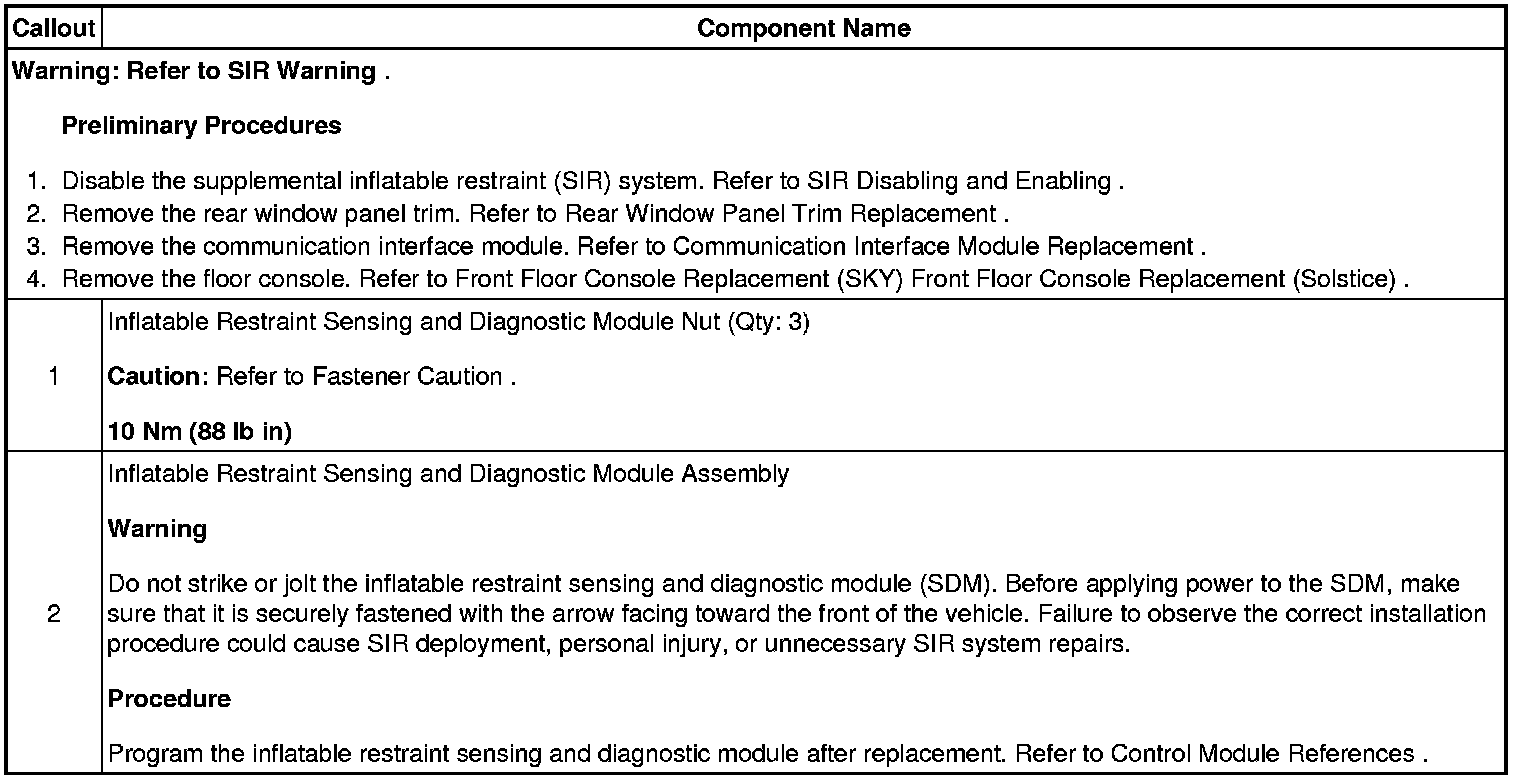 Inflatable Restraint Sensing and Diagnostic Module Replacement