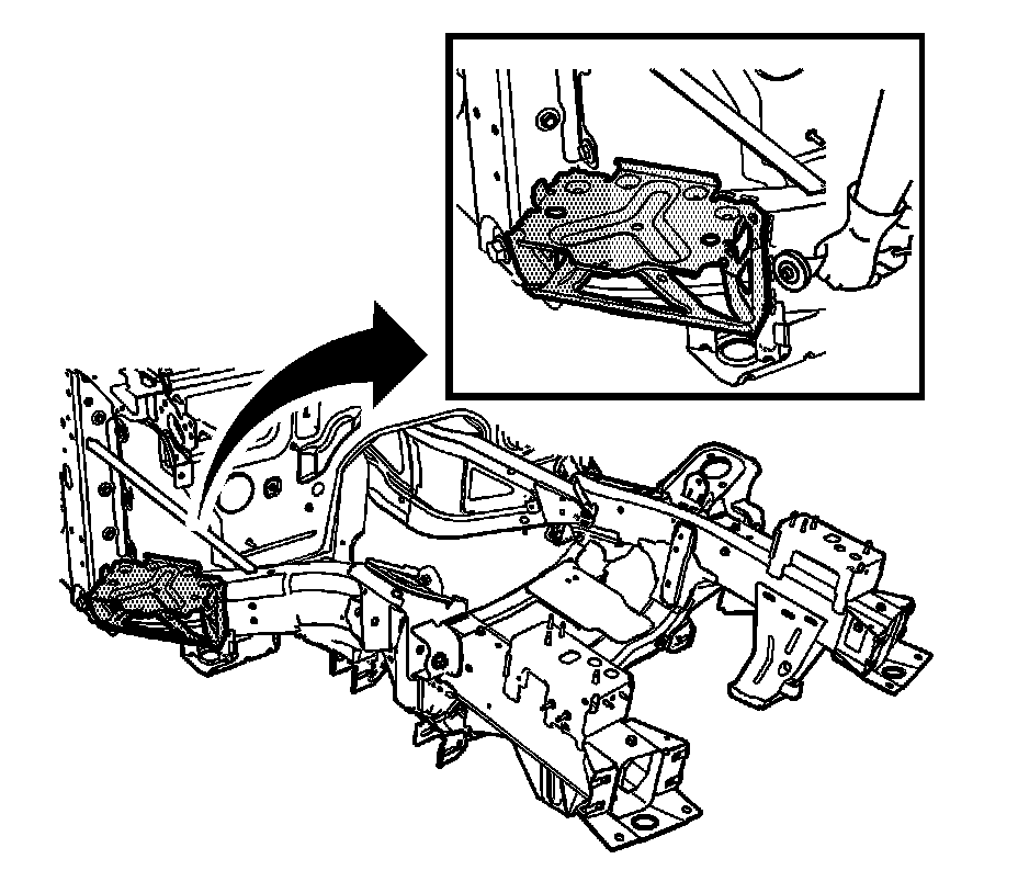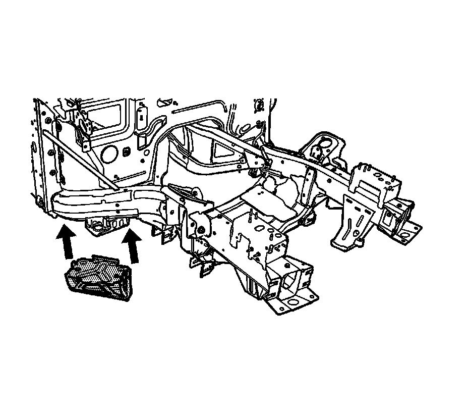 6. Locate and remove all factory welds attaching the battery tray to the frame rail. Note the number and location of the welds for installation of the new battery tray.