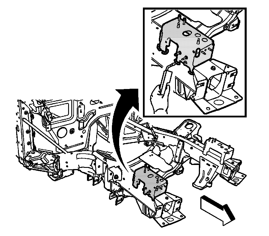 3. Position the battery tray to the vehicle using 3-dimensional measuring equipment. Clamp the battery tray into place.