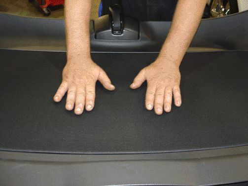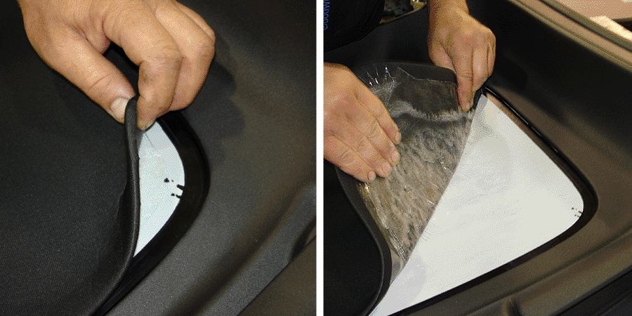 7. To establish a good bond between the headliner and roof panel, use a rubout motion to apply a firm and even amount of pressure to the headliner.