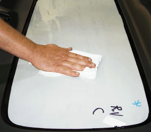 5. Clean the contact area of the roof panel with isopropyl rubbing alcohol and shop towel.
