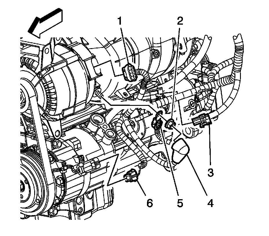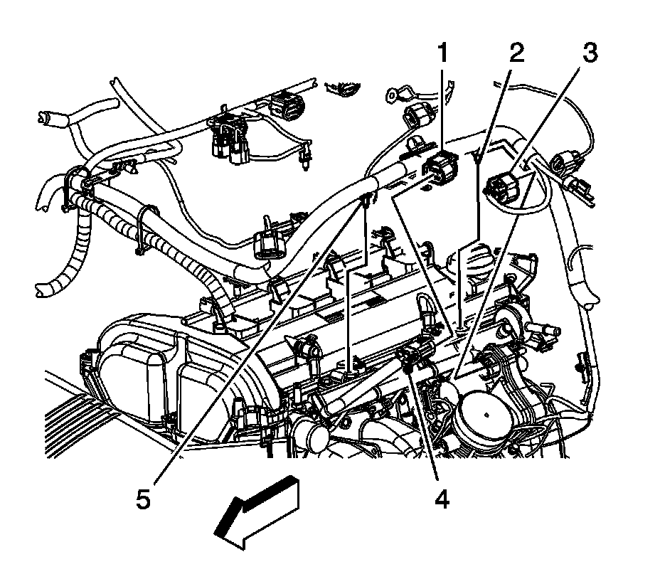 16. Remove the engine harness clip (4) from the intake manifold.