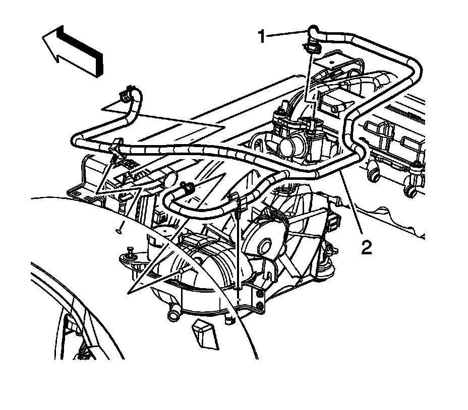 14. Remove the air bleed hose (2) from the engine and reposition.