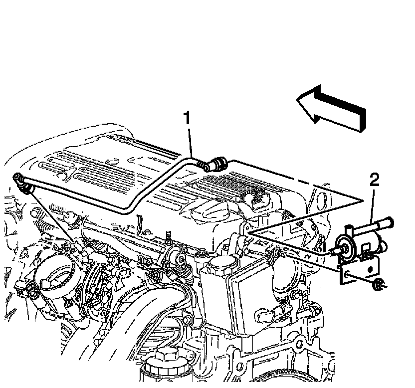 Note: Ensure that the rear metal tab of the EVAP emission canister valve is resting on the power steering pump metal body.
