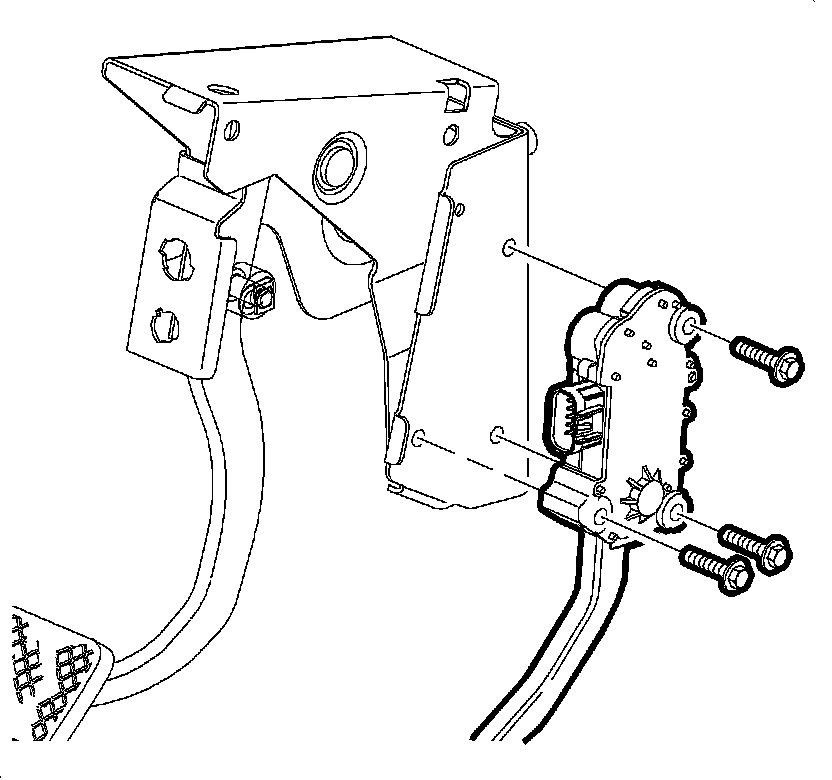 1. Install the accelerator pedal assembly to the brake pedal bracket. Refer to Accelerator Pedal Position Sensor Replacement (Service and Repair).