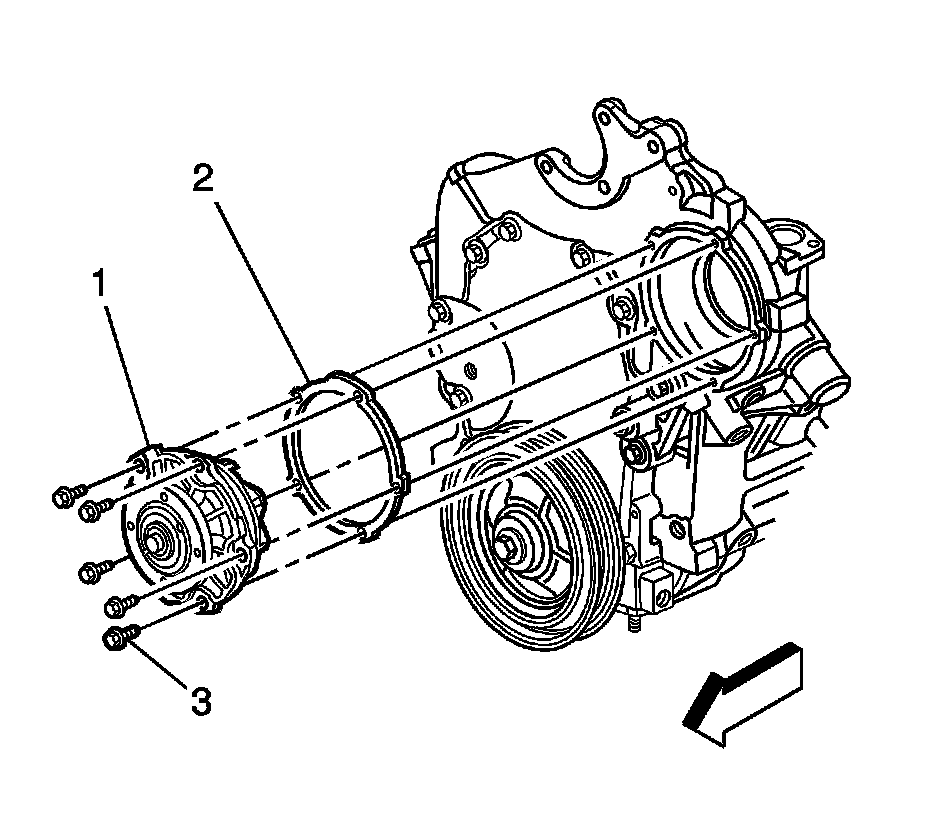 1. Drain the cooling system until the coolant is below the level of the water pump. Refer to Cooling System Draining and Filling (LY7 GE 47716 Fill) (Service and Repair)Cooling System Draining and Filling (LNJ GE 47716 Fill) (Service and Repair)Cooling System Draining and Filling (LNJ Static Fill) (Service and Repair)Cooling System Draining and Filling (LY7 Static Fill) (Service and Repair).