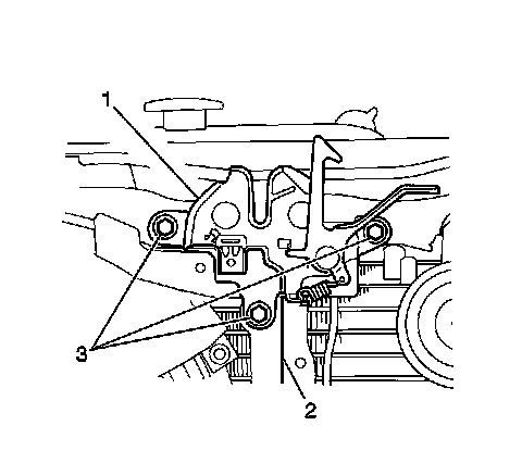 1. Remove the hood secondary catch and primary latch. Refer to Hood Primary and Secondary Latch Replacement (Service and Repair).
