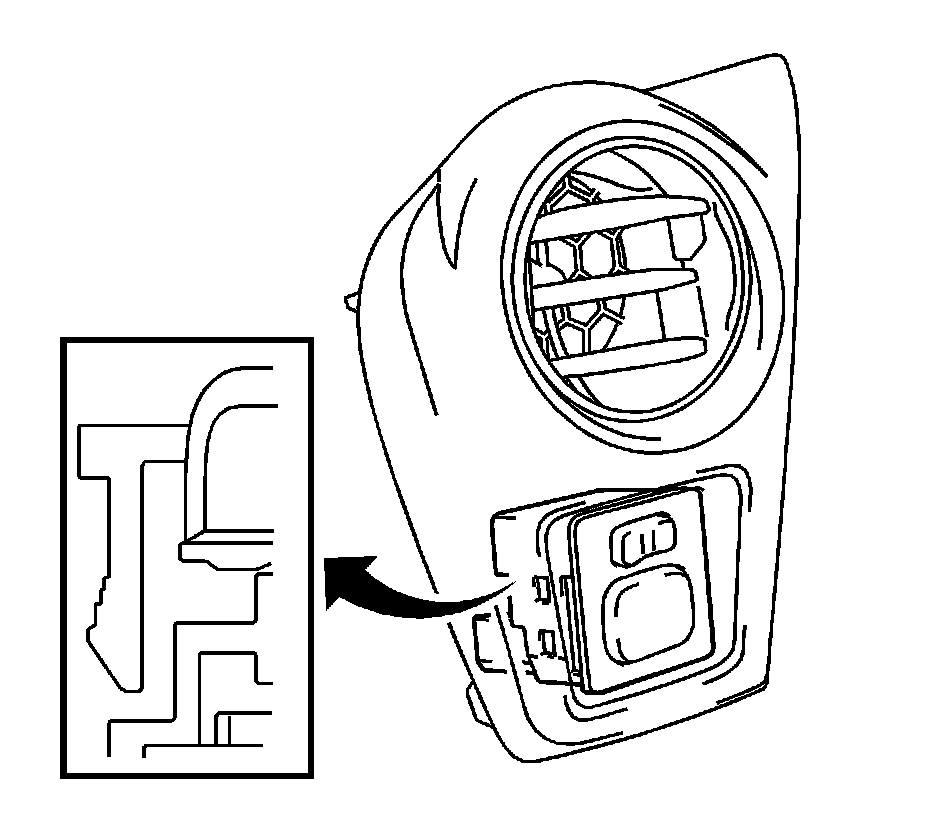 1. Using a taped flat-bladed tool, disengage the two clips and remove the power mirror switch.
