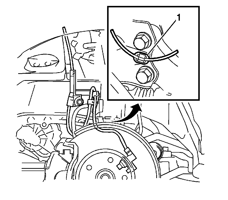 3. Remove the bolt (1) retaining the wheel speed sensor pigtail harness.