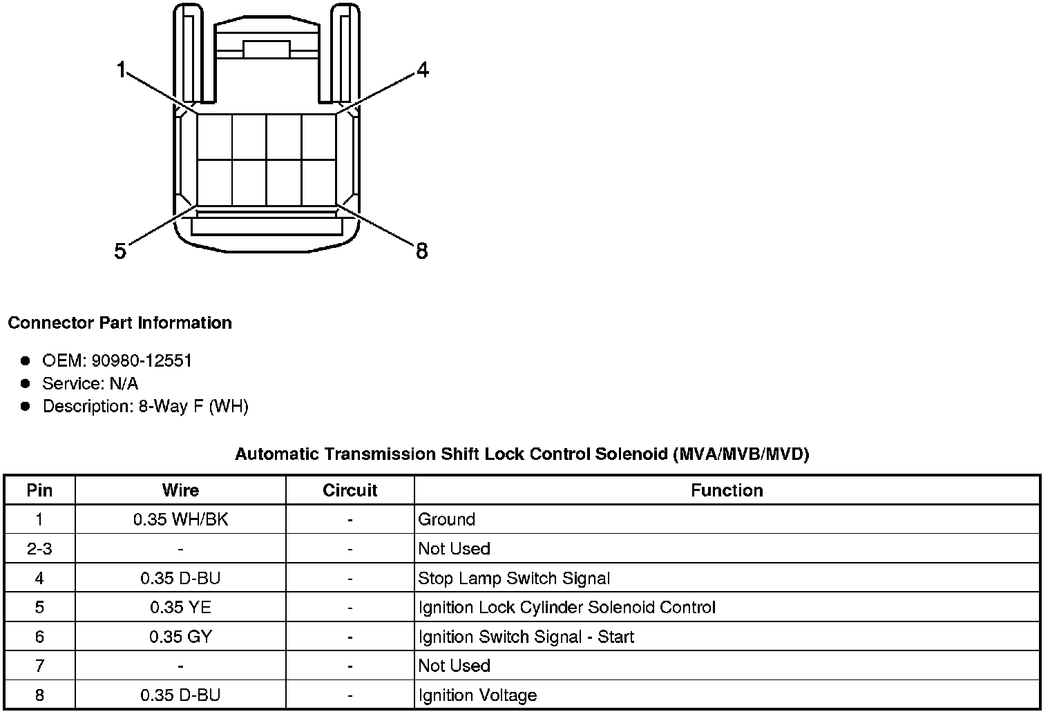 Automatic Transmission Shift Lock Control Solenoid (MVA/MVB/MVD)
