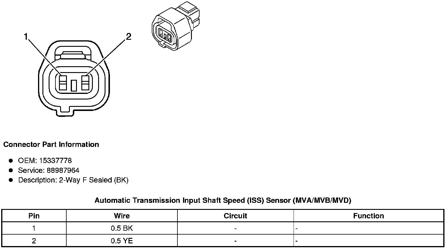 Automatic Transmission Input Shaft Speed (ISS) Sensor (MVA/MVB/MVD)