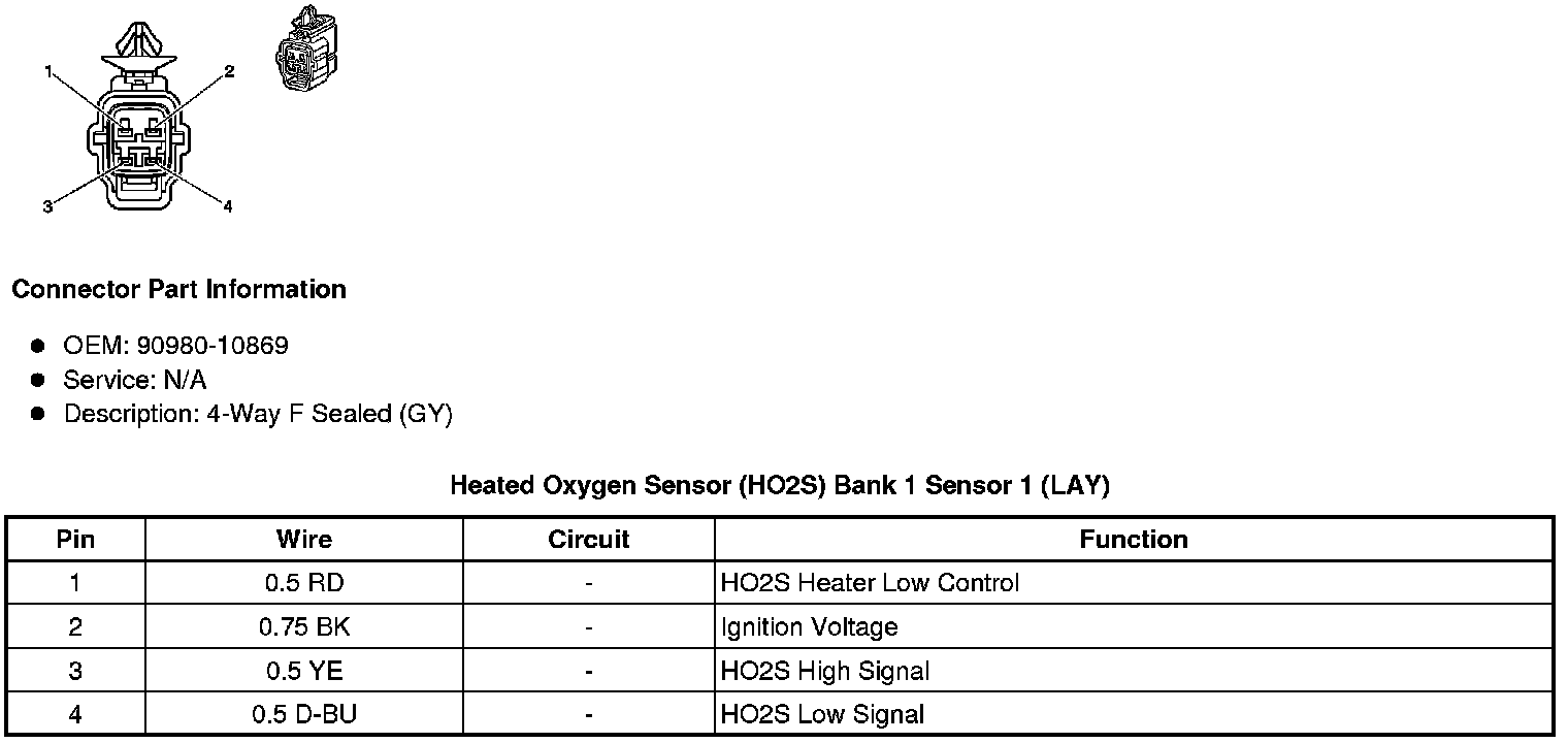 Heated Oxygen Sensor (HO2S) Bank 1 Sensor 1 (LAY)