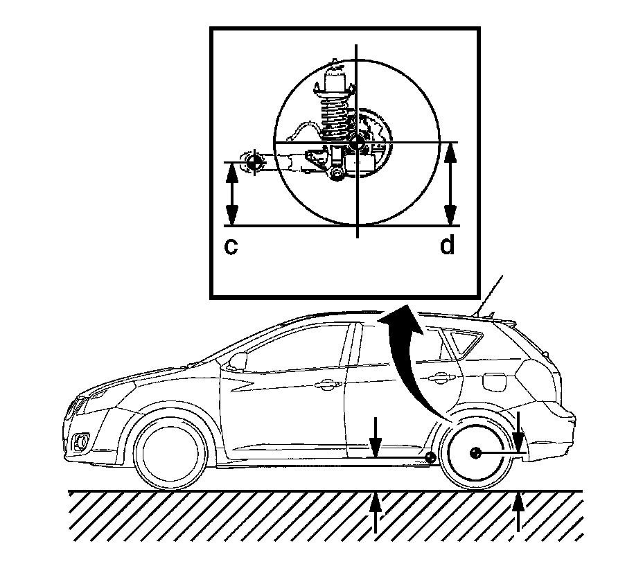 The D height dimension measurement determines the proper ride height for the rear of the vehicle.
