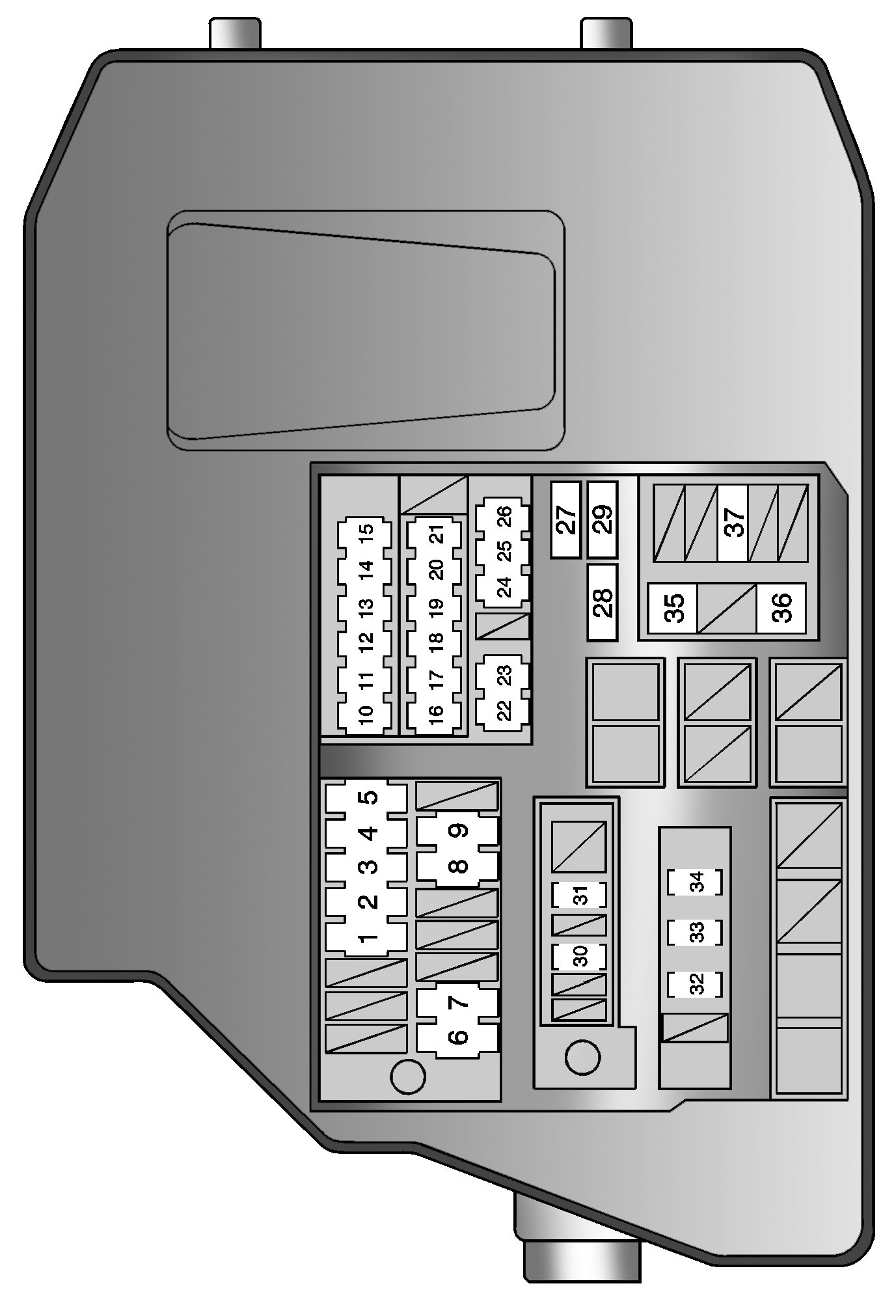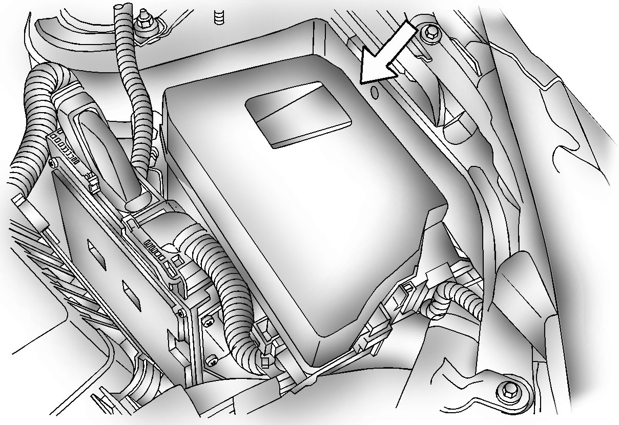 This engine compartment fuse block is located in the engine compartment on the driver side of the vehicle near the air cleaner.