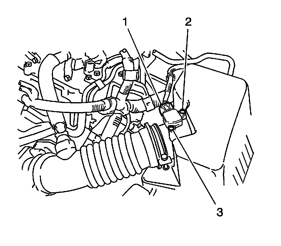 1. Install the mass air flow meter (3) with the 2 screws (3) and tighten to 1.0 Nm (9 lb in).
