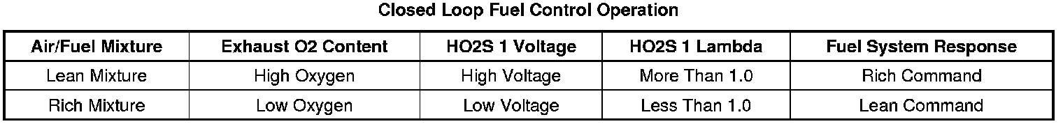 In order to obtain the most efficient engine performance with a good balance of power and fuel economy, the air/fuel mixture must be kept as close to the theoretical air/fuel ratio of 14.7:1 as possible. Maintaining the 14.7:1 air/fuel ratio also provides efficient operation of the 3-way catalytic converter (TWC) and a high clarification rate of carbon monoxide (CO), hydrocarbons (HC), and nitrogen oxides (NOx) in the exhaust gas stream, In order to accomplish this, the powertrain control module (PCM) first compares the input voltage from the heated oxygen sensor 1 (HO2S 1) with a specified reference voltage.
