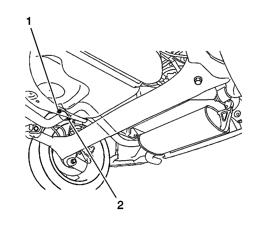 10. Install the tail exhaust pipe assembly with the 2 bolts (1) and 2 compression springs (2). Tighten the bolts to 43 Nm (32 lb ft).