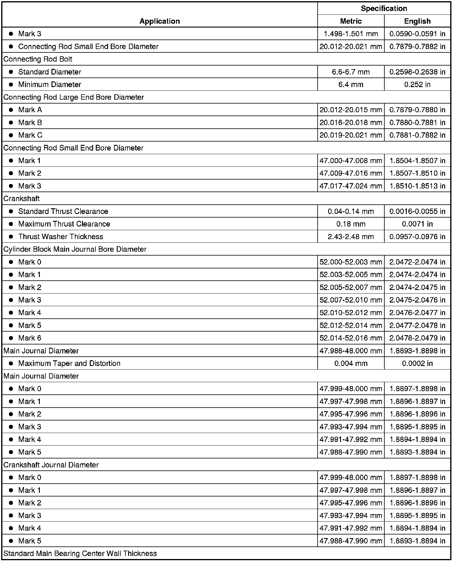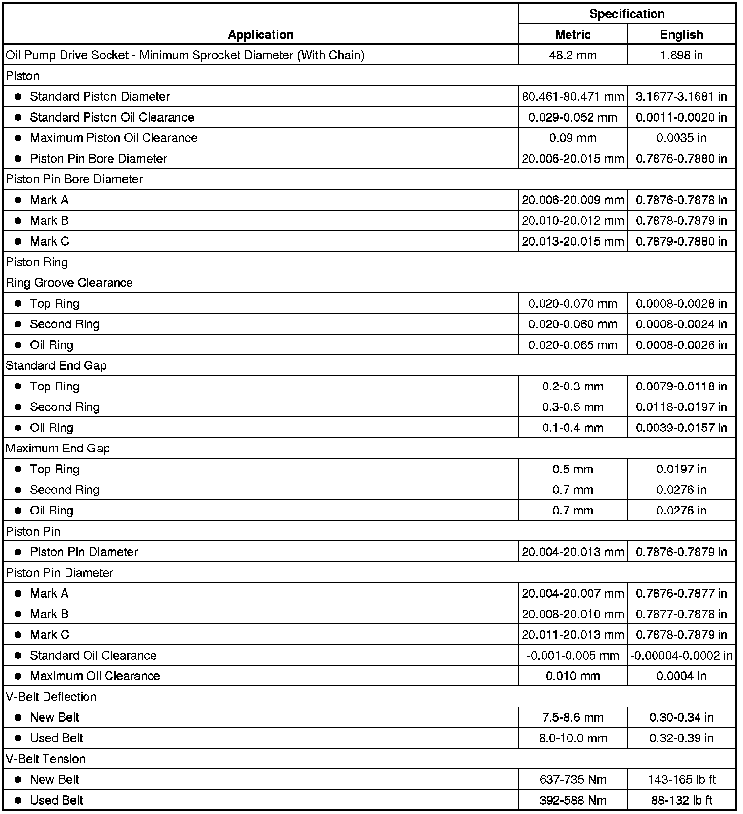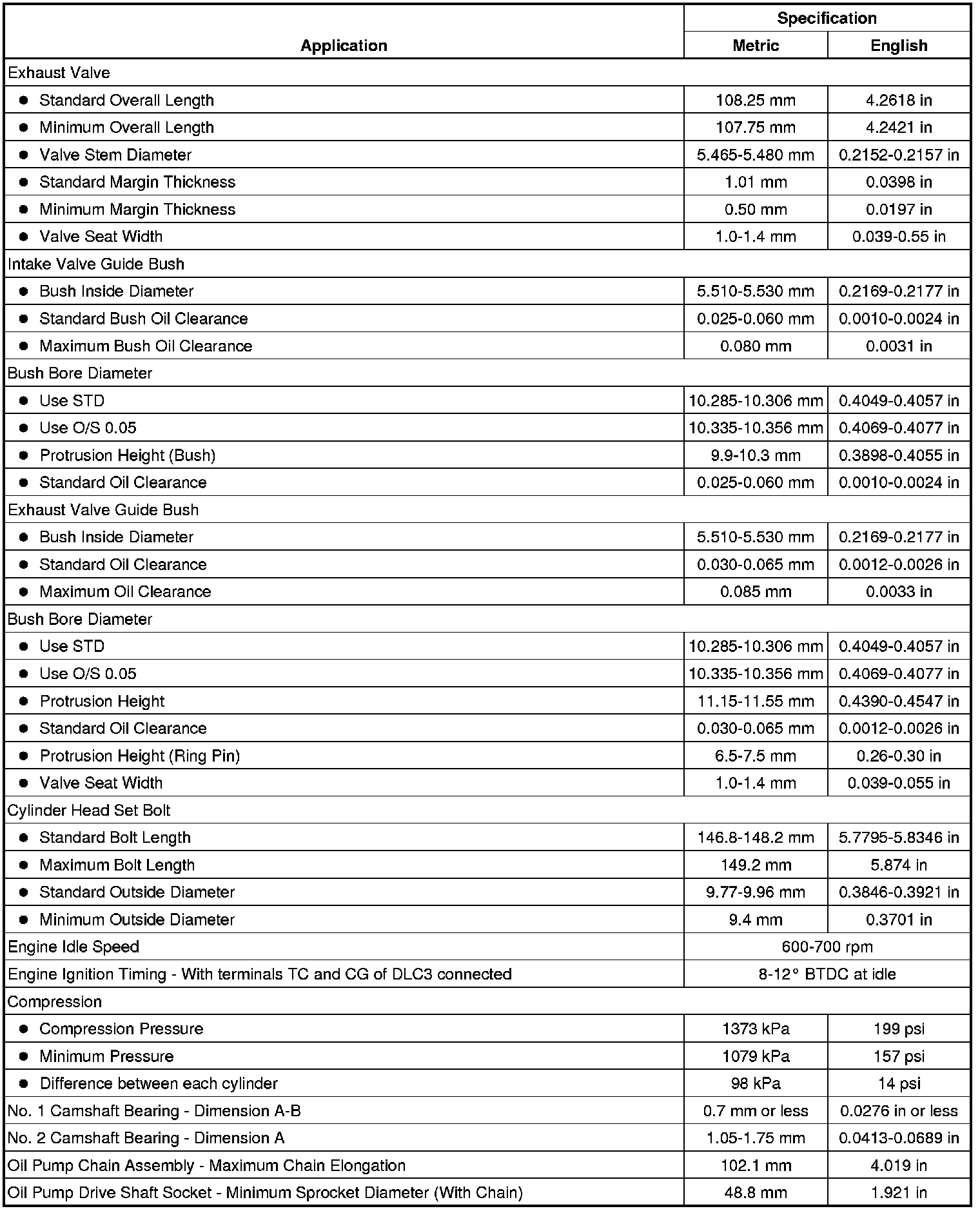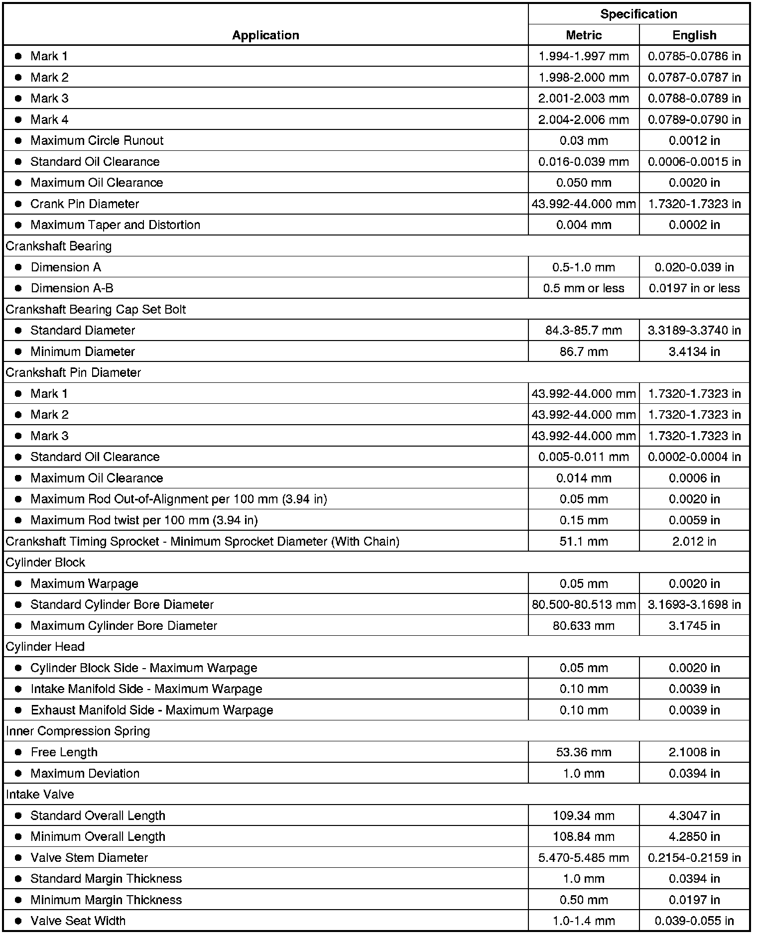 Engine Mechanical Specifications