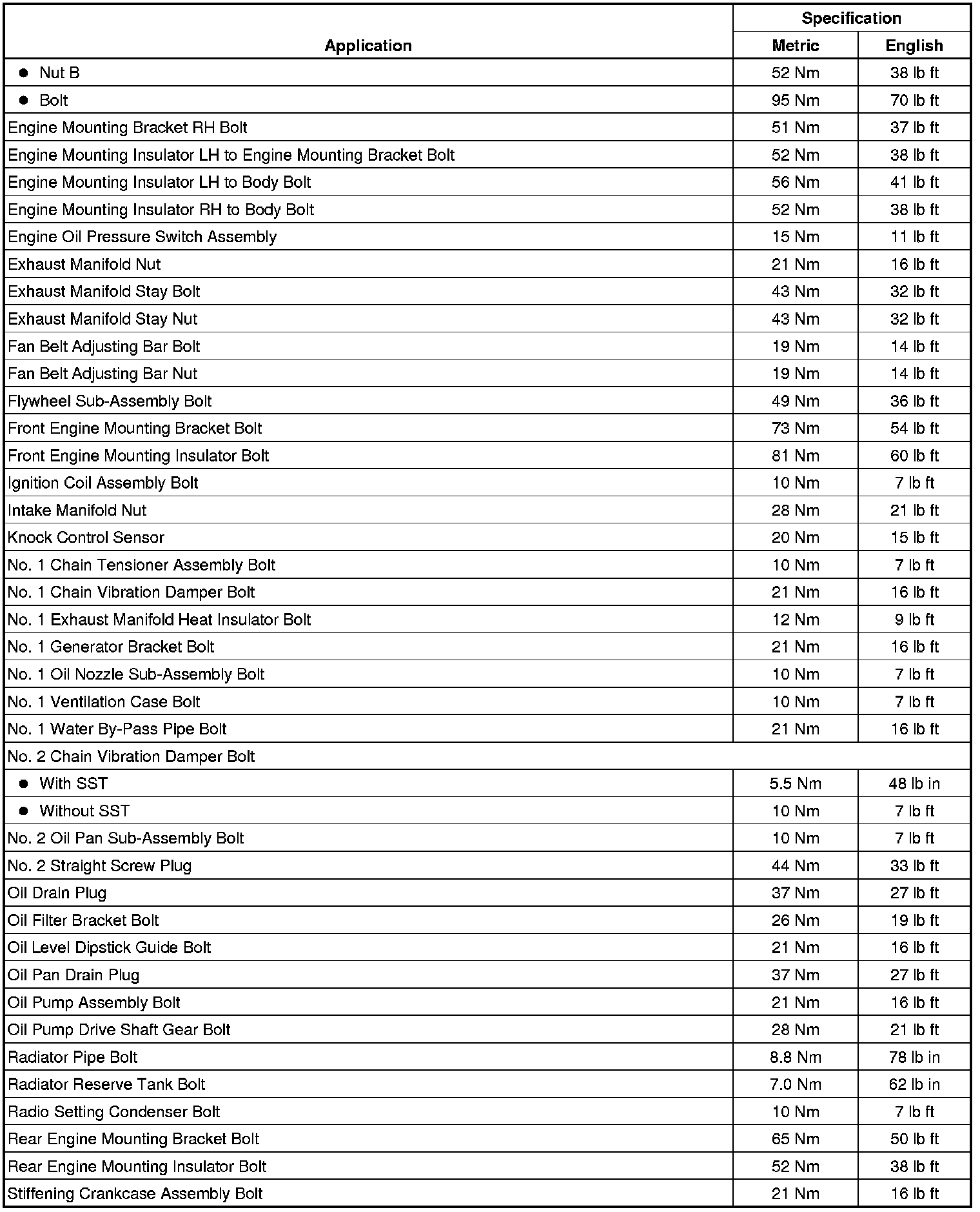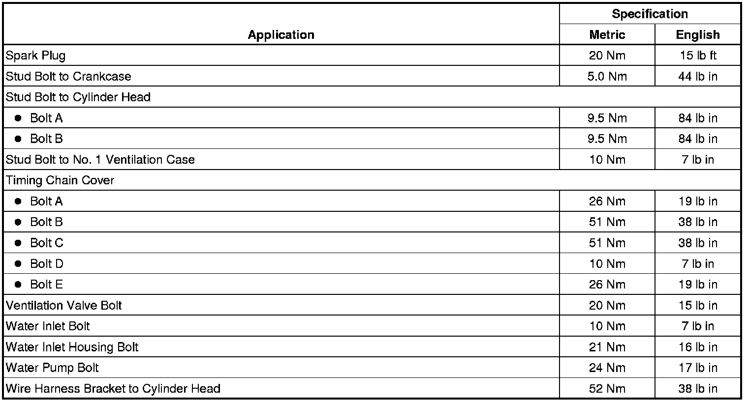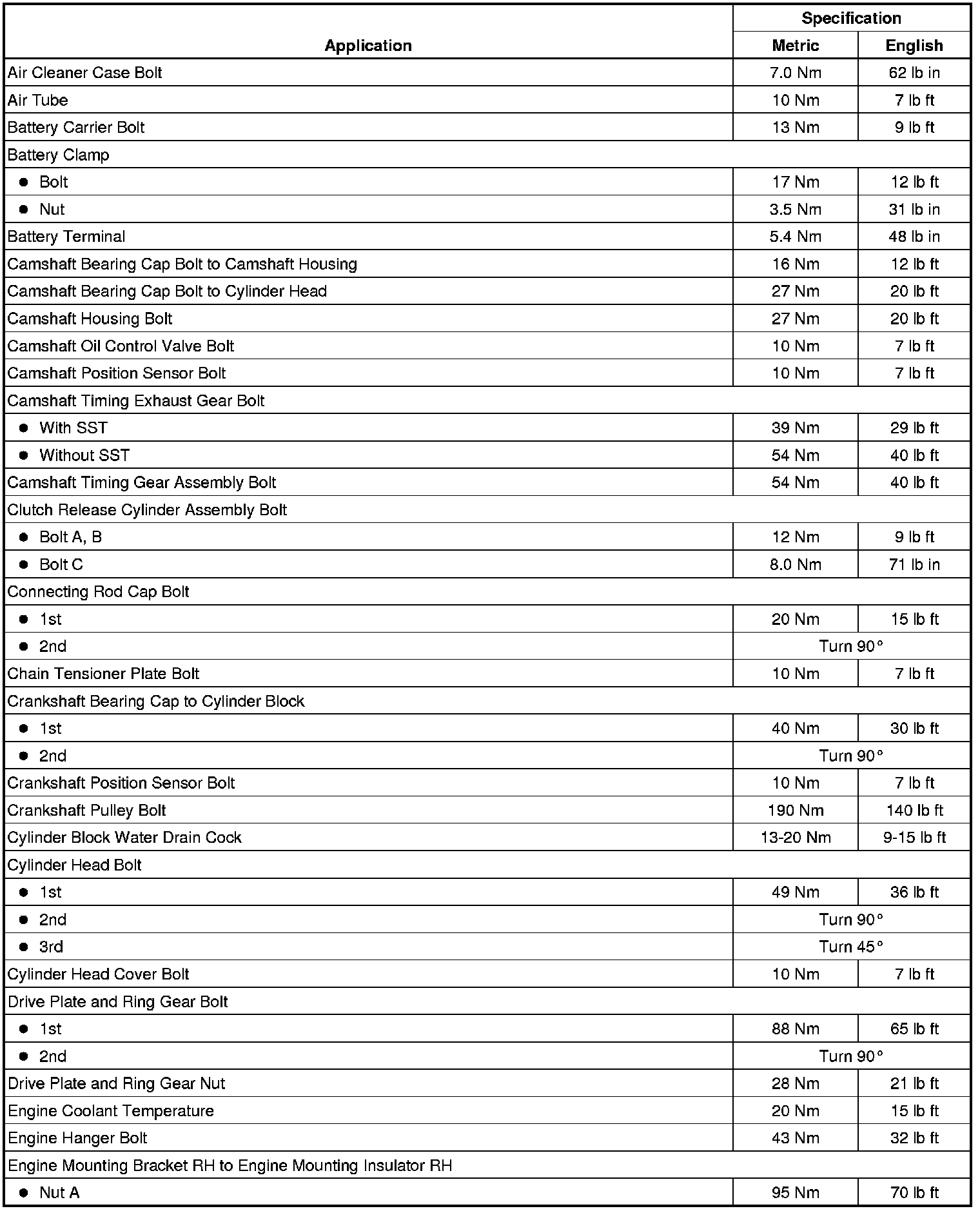 Fastener Tightening Specifications