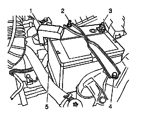 1. Install the battery (5) into the vehicle. Position the battery into the carrier.