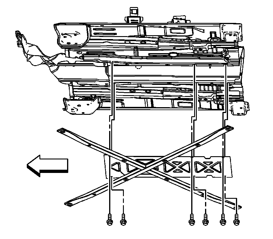Note: In steps 1-8, use a transmission jack or the help of an assistant to install the support brace, floor tunnel brace, and the rear crossmember brace in the vehicle.