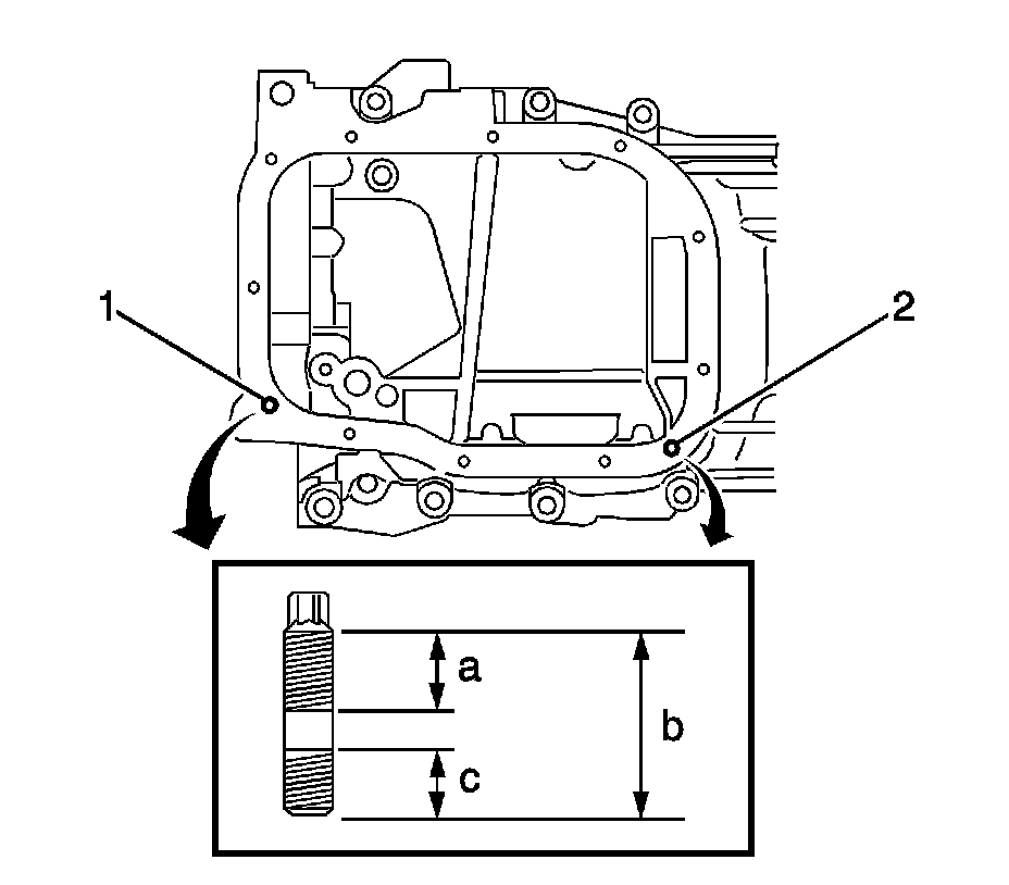 4. Using a TORX socket E5, install the 2 stud bolts (1,2) as shown in the illustration.