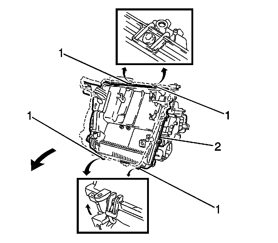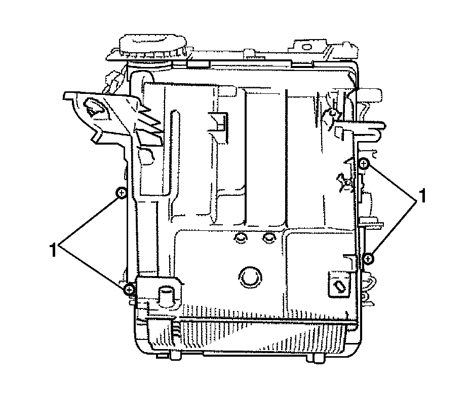 1. Remove the HVAC module assembly. Refer to Air Conditioning and Heater Module Assembly Replacement (Air Conditioning and Heater Module Assembly Replacement).