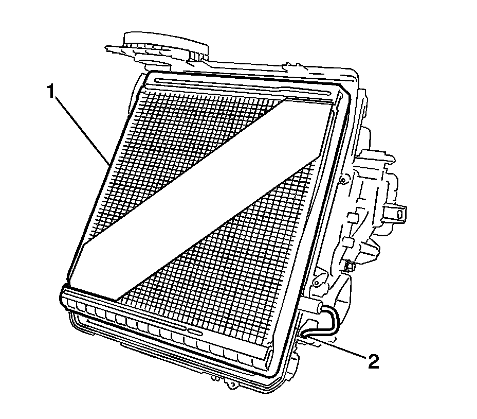 2. Engage the clamp (2) and install the evaporator (1) to the HVAC module assembly.