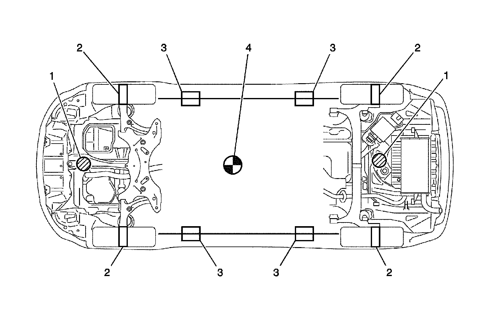 Note: The rear hoist pads must not contact the rocker panel trim, the rear fenders, the side doors, or the floor pan.