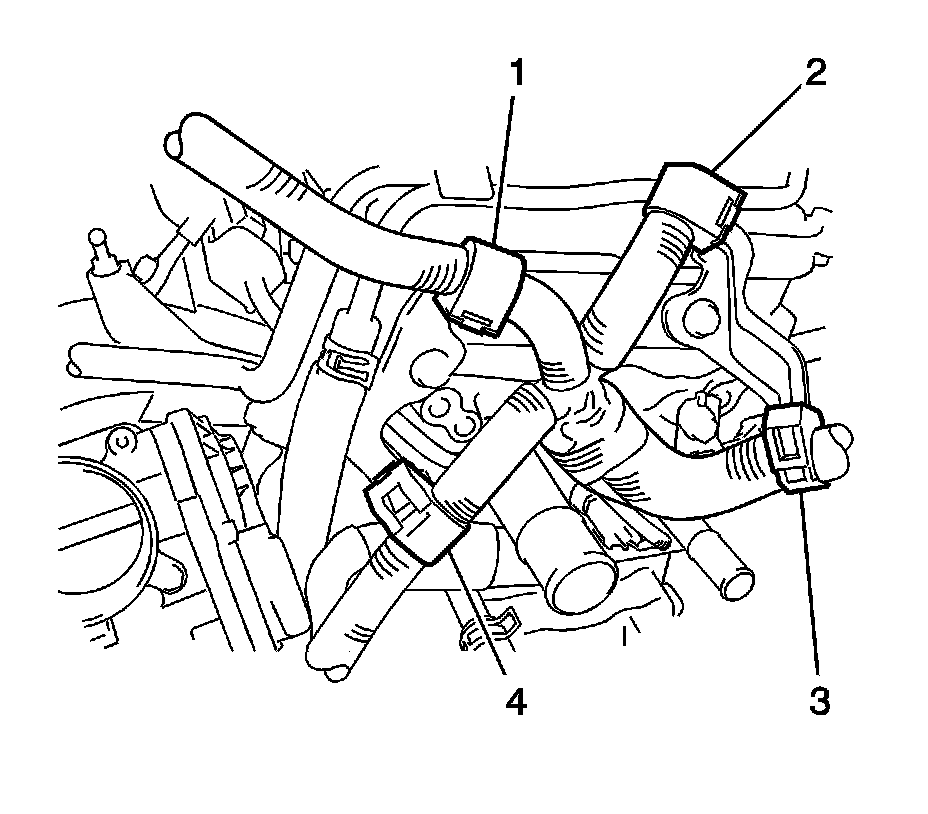 10. Disconnect the 4 wire harness clamps (1, 2, 3, 4).