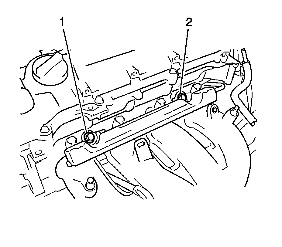 5. Install the fuel delivery pipe with the 4 fuel injector assemblies, then temporarily install the 2 bolts (1, 2).
