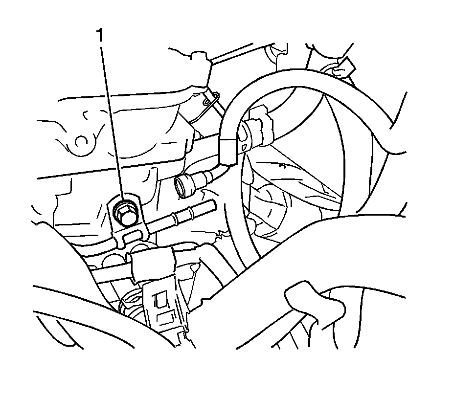 7. Install the bolt (1) to secure the fuel delivery pipe and tighten to 21 Nm (15 lb ft).