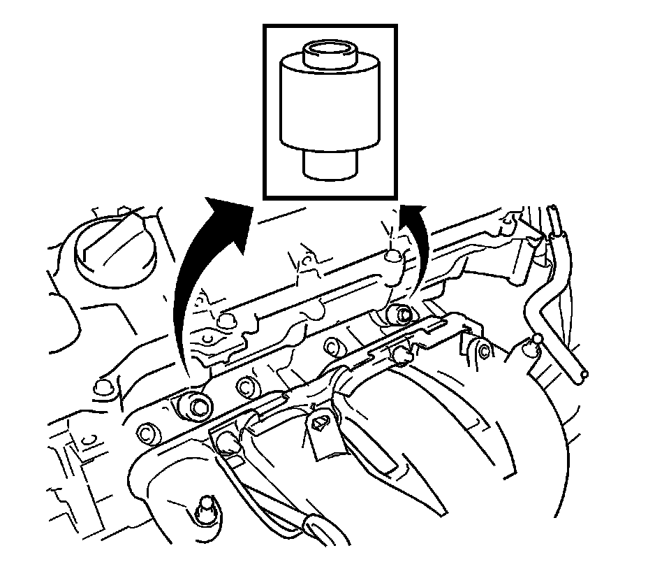 4. Install the 2 delivery pipe spacers onto the cylinder head.