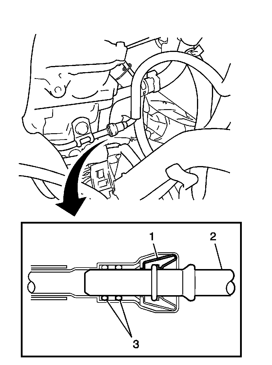 9. Insert the fuel tube connector into the fuel delivery pipe (2) until a "click" sound can be heard.