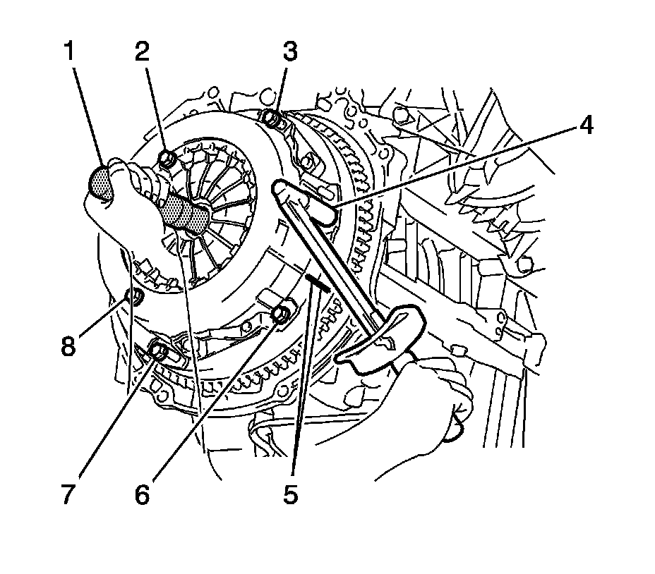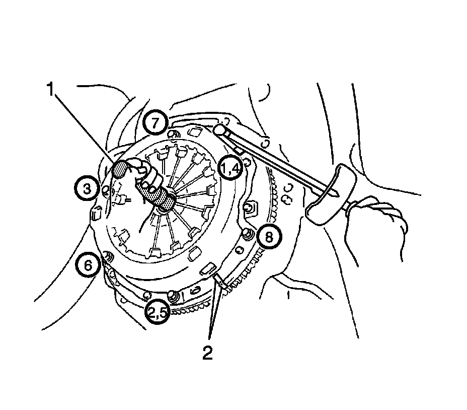 Tighten the bolts (2-4, 6-8) in order, starting with the bolt located near the knock pin at the top