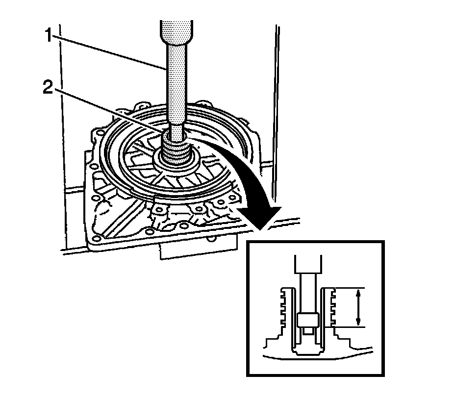 2. Using a press (1), install the needle roller bearing into the transmission case cover.