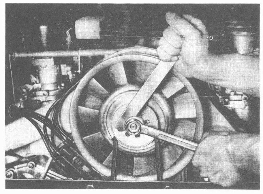 3. Remove alternator pulley retaining nut (hold with special tool P 208) and take off the V-belt.