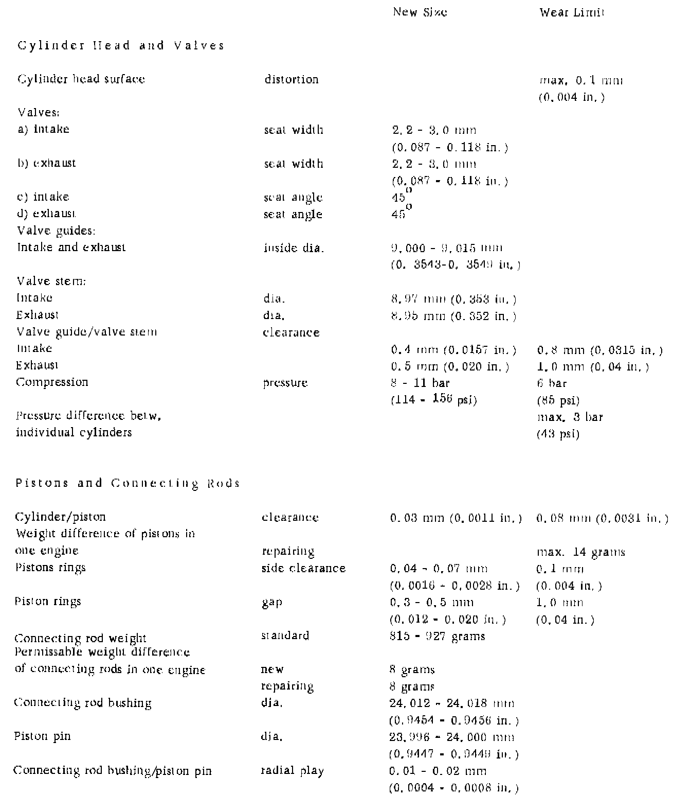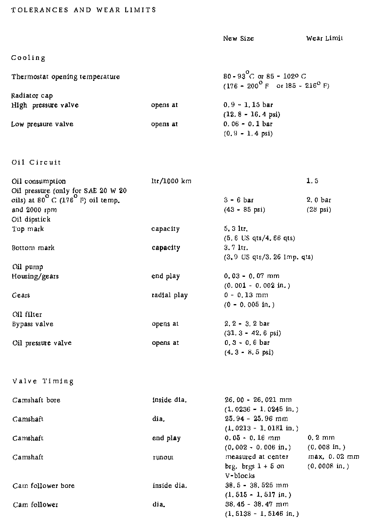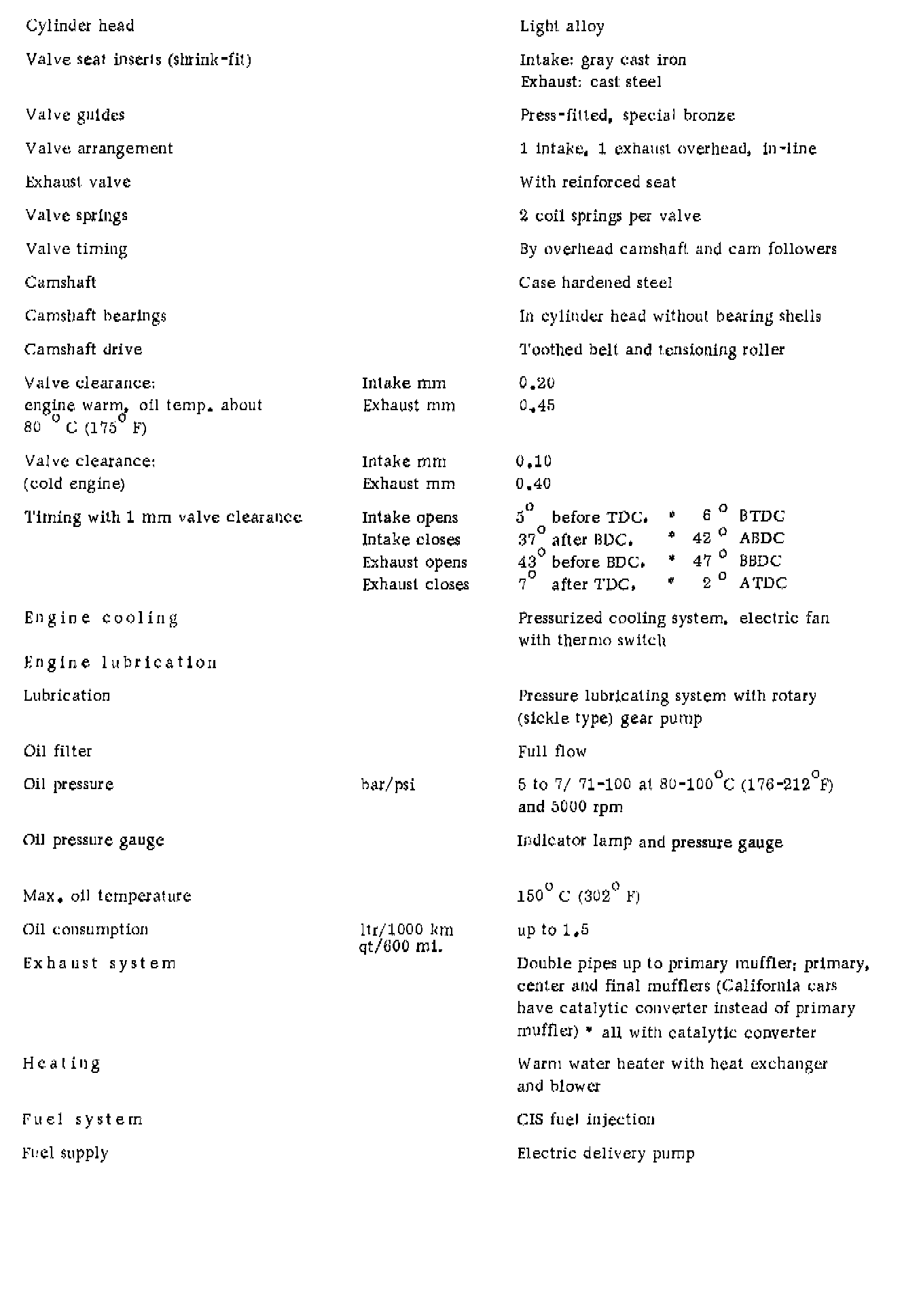 VALVE SPECIFICATIONS