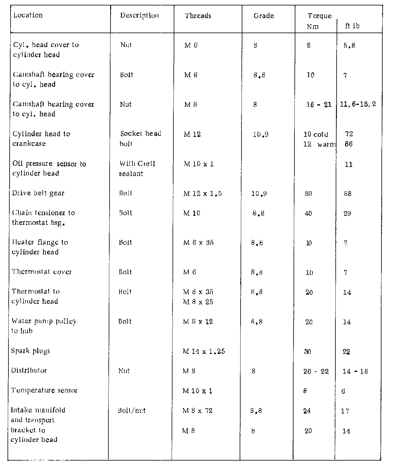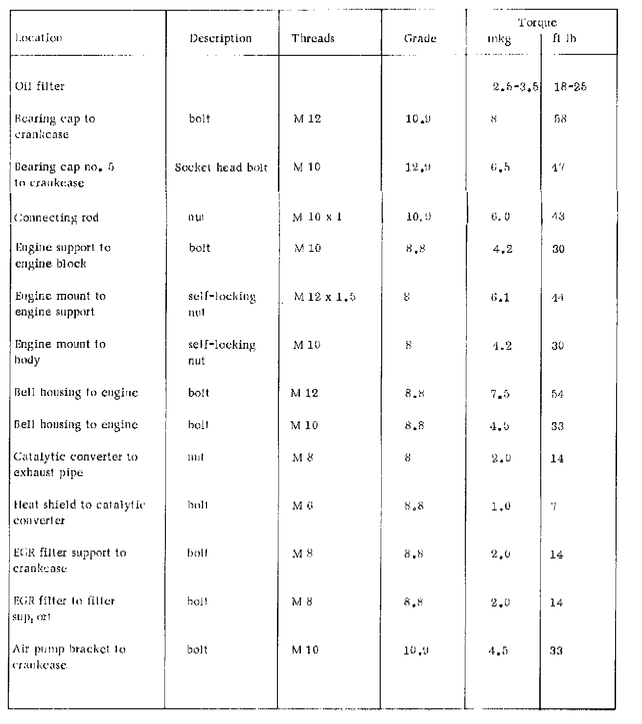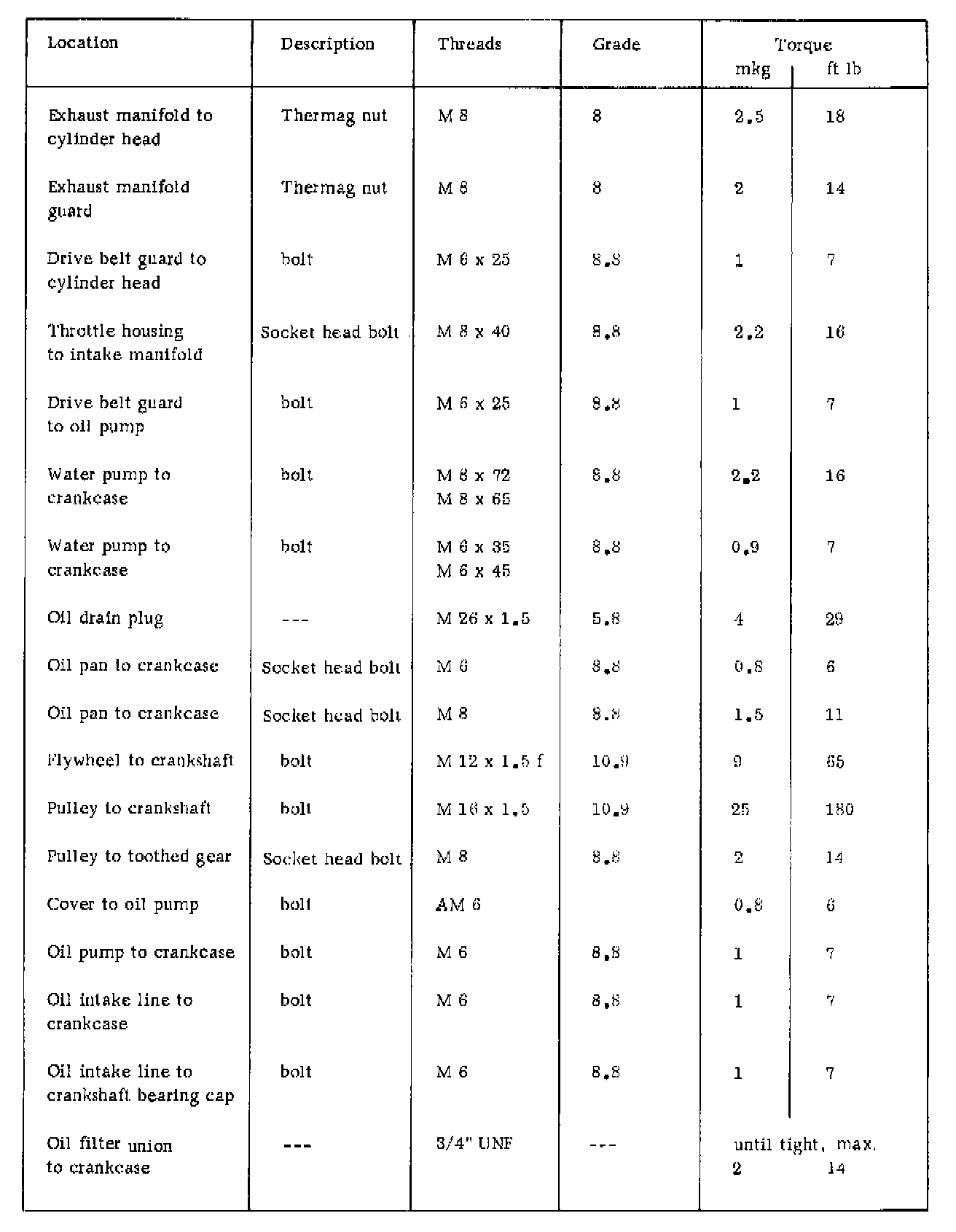 TIGHTENING SPECIFICATIONS