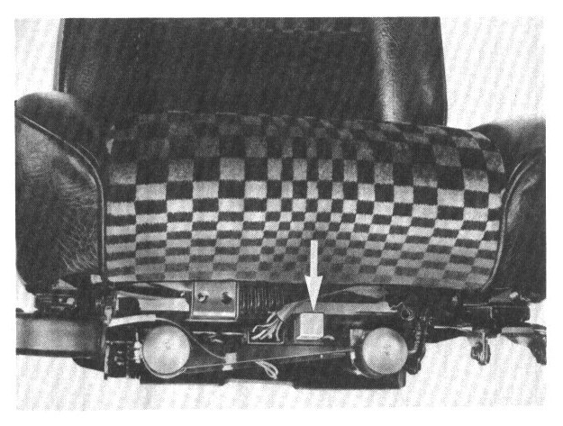Relay for electric seat's forward movement is located underneath the seat on the adjusting frame.