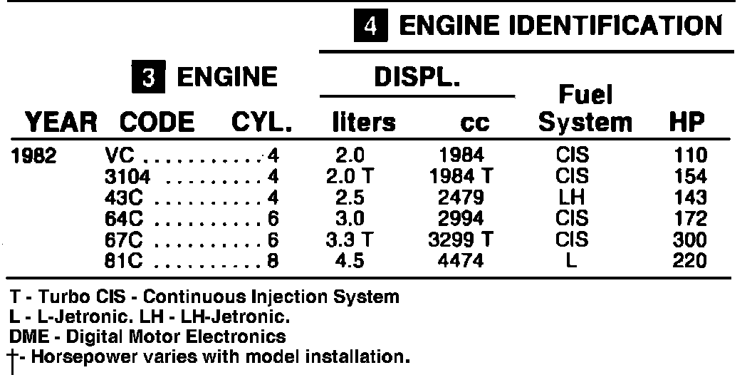 To identify an engine by the manufacturer's code, follow the four steps designated by the numbered blocks.