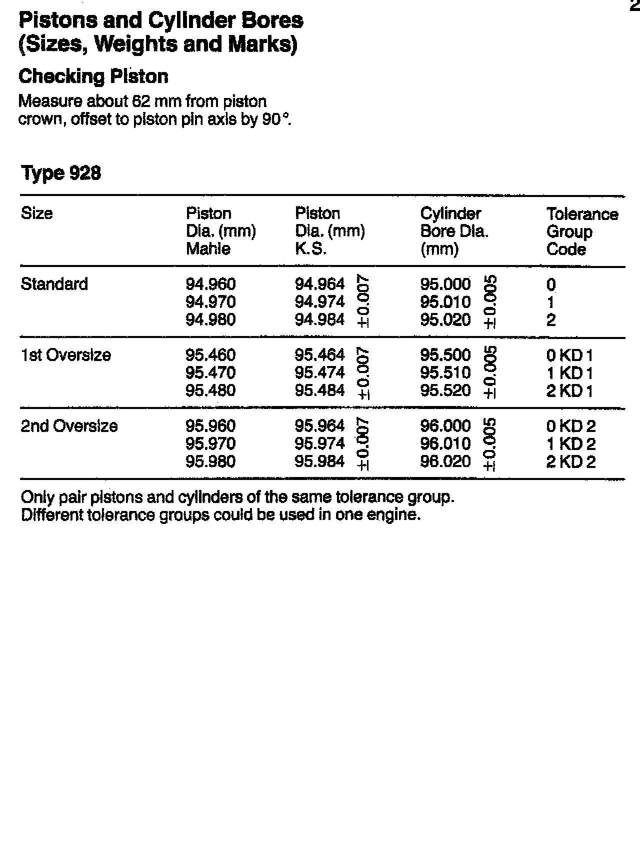 TOLERANCES AND WEAR LIMITS