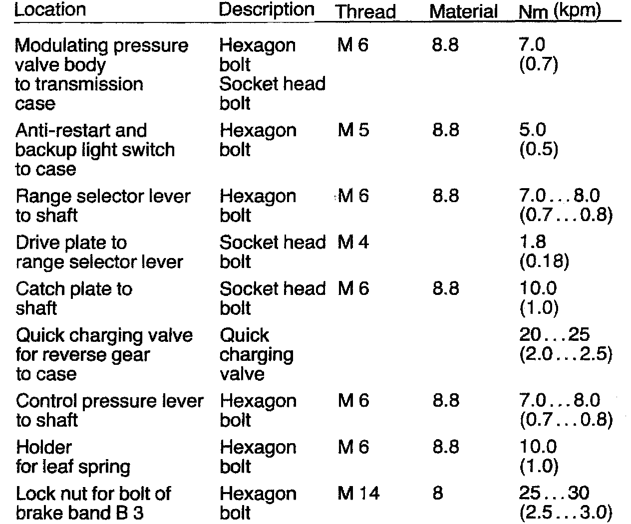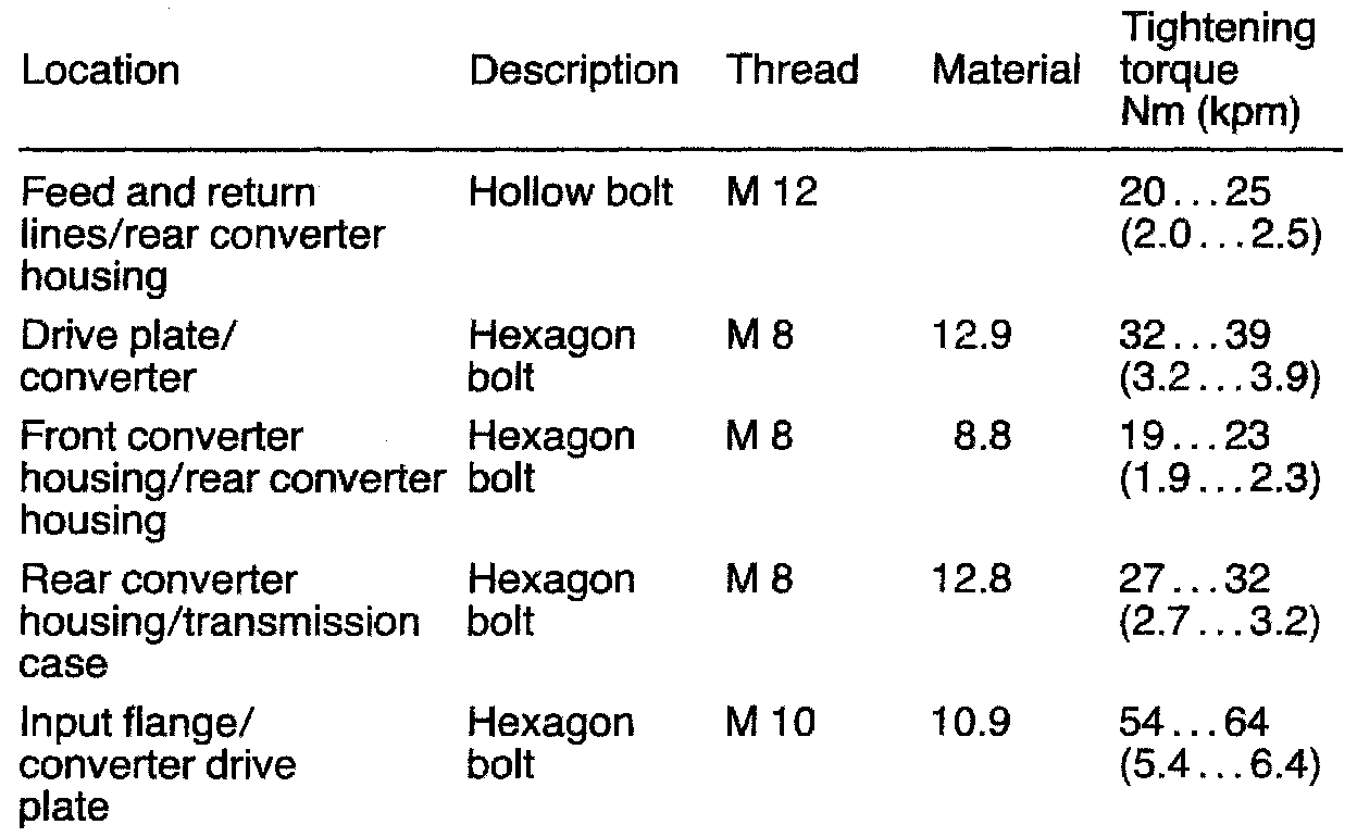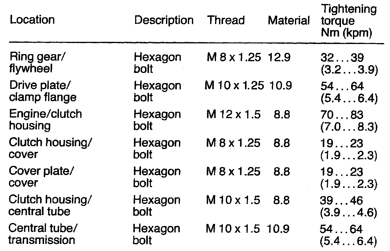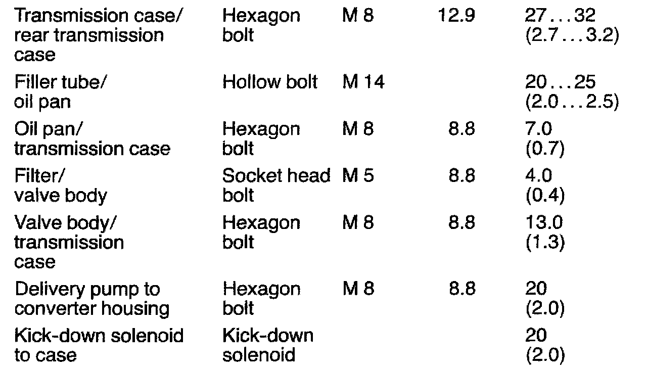 Transmission Tightening Torques: