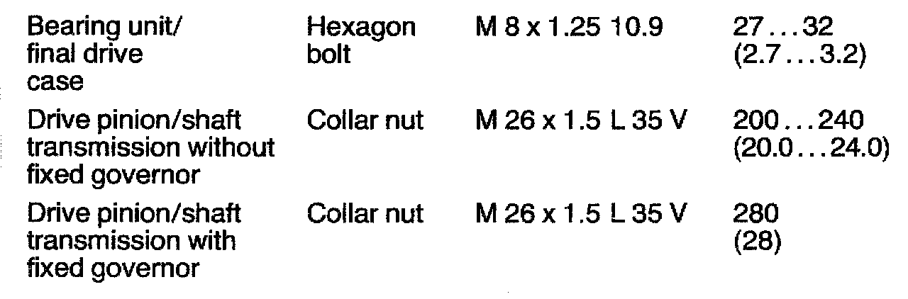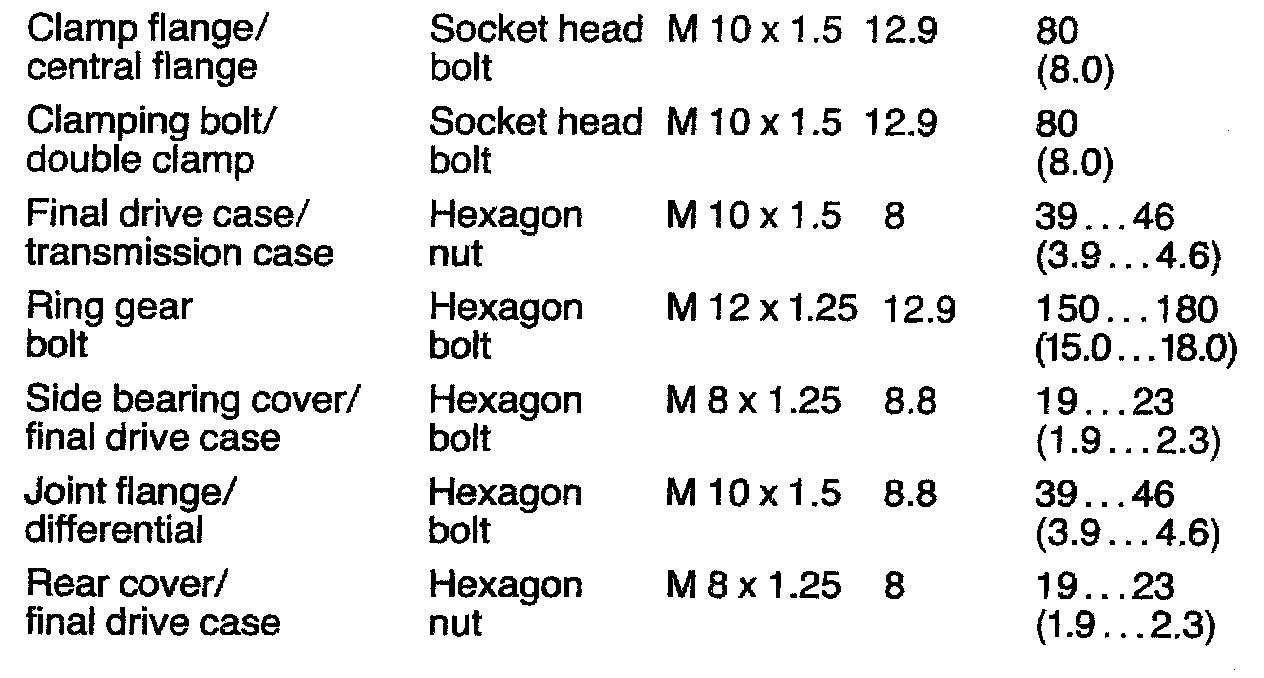 Central Tube & Final Drive Tightening Torque: