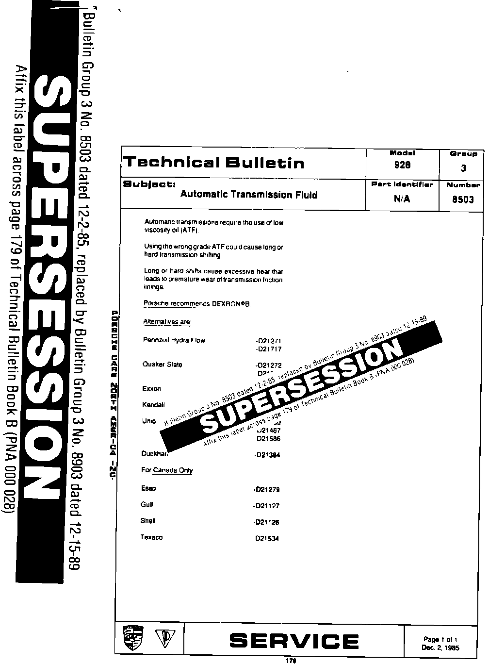 This bulletin replaces Technical Bulletin Group 3, Number 8503, Book B, page 179 and Technical Bulletin Group 3, Number 8604, Book C, page 97.