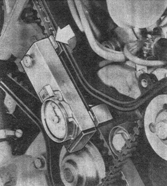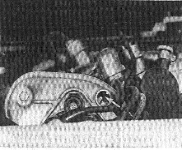 8. Crank engine two turns clockwise and align TDC mark on camshaft sprocket with mark cast in console for distributor cap. Crank engine counter-clockwise from this position about 10 crankshaft degrees.