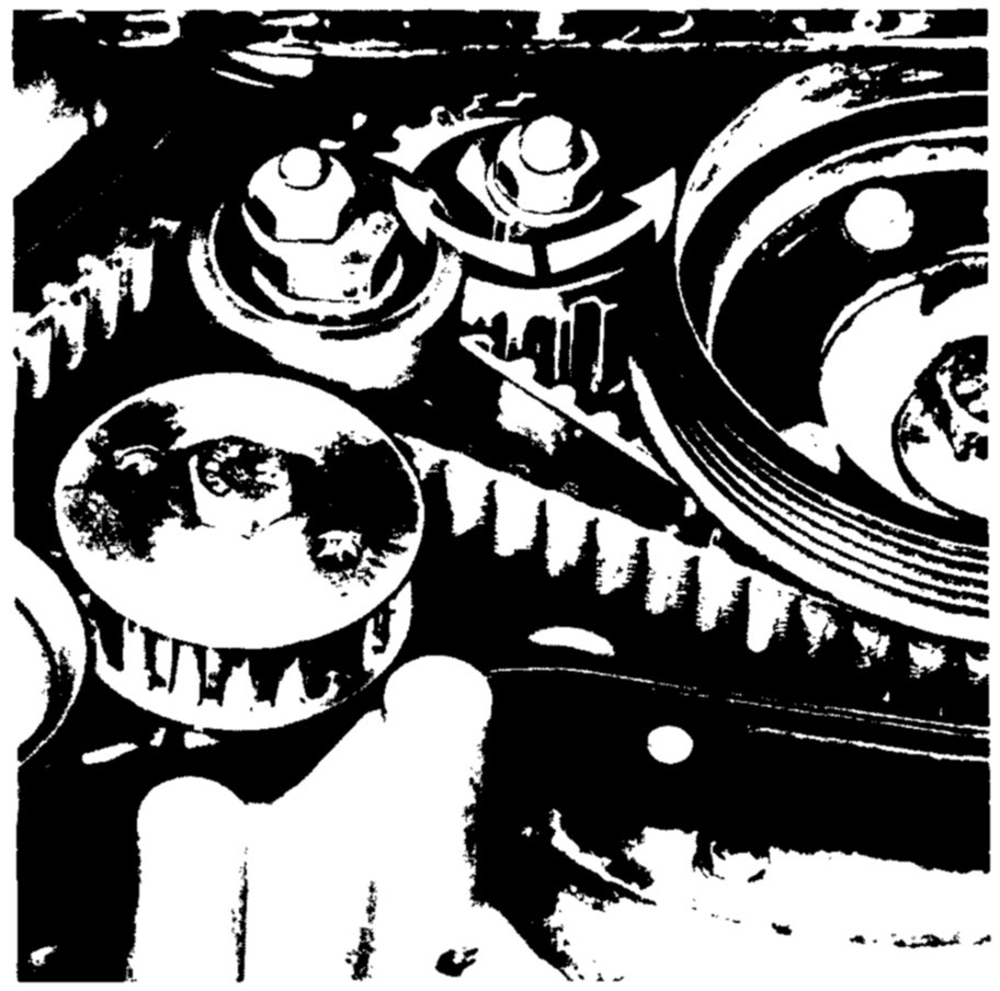 NOTE: While turning, check toothed drive belt for wear and damage.